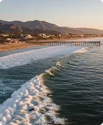 A Southern California landmark since 1905, this iconic pier with signature white towers offers front-row seats to world-class surfing. Grab breakfast at Malibu Farm Cafe at the pier's end for breathtaking ocean views.